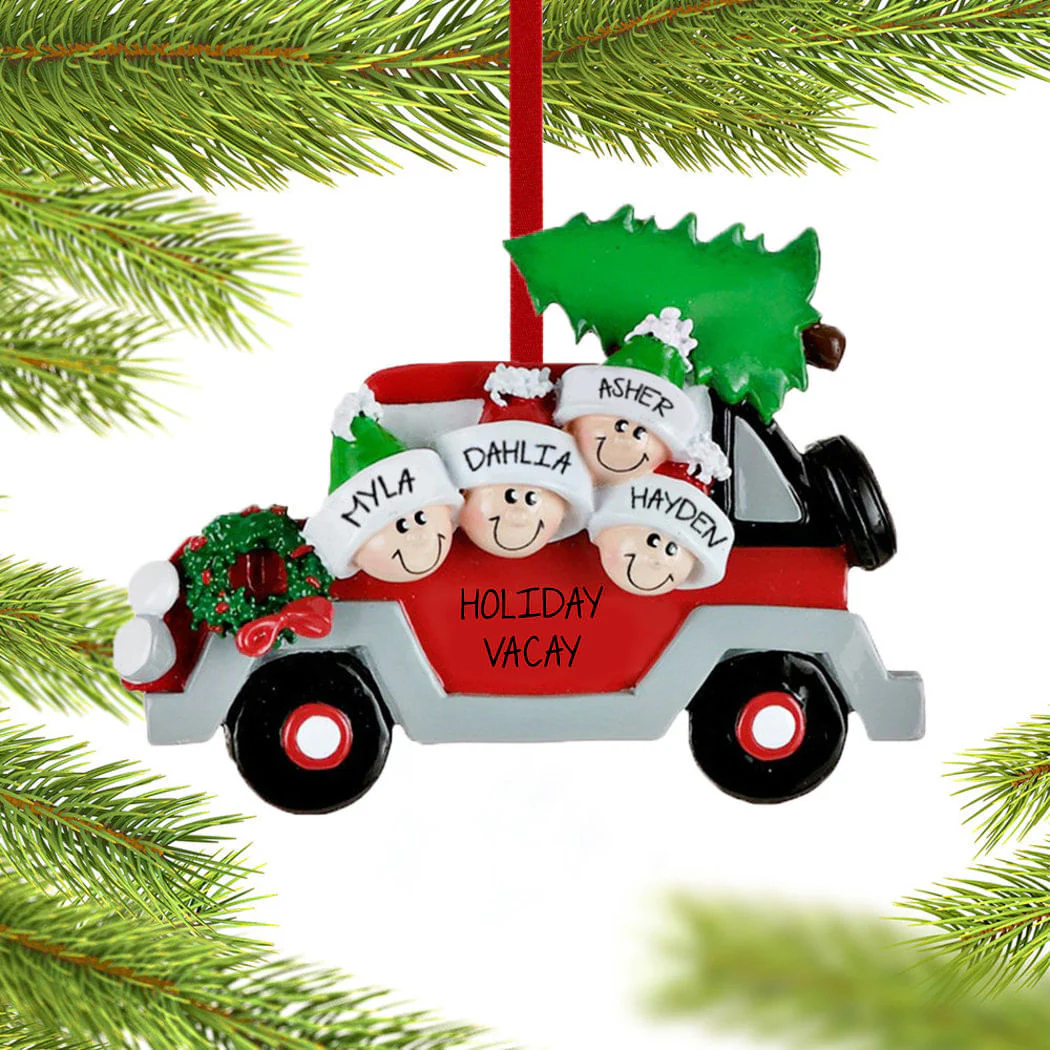 Car Family Personalized Ornament - 2, 3, 4, 5 Family Members