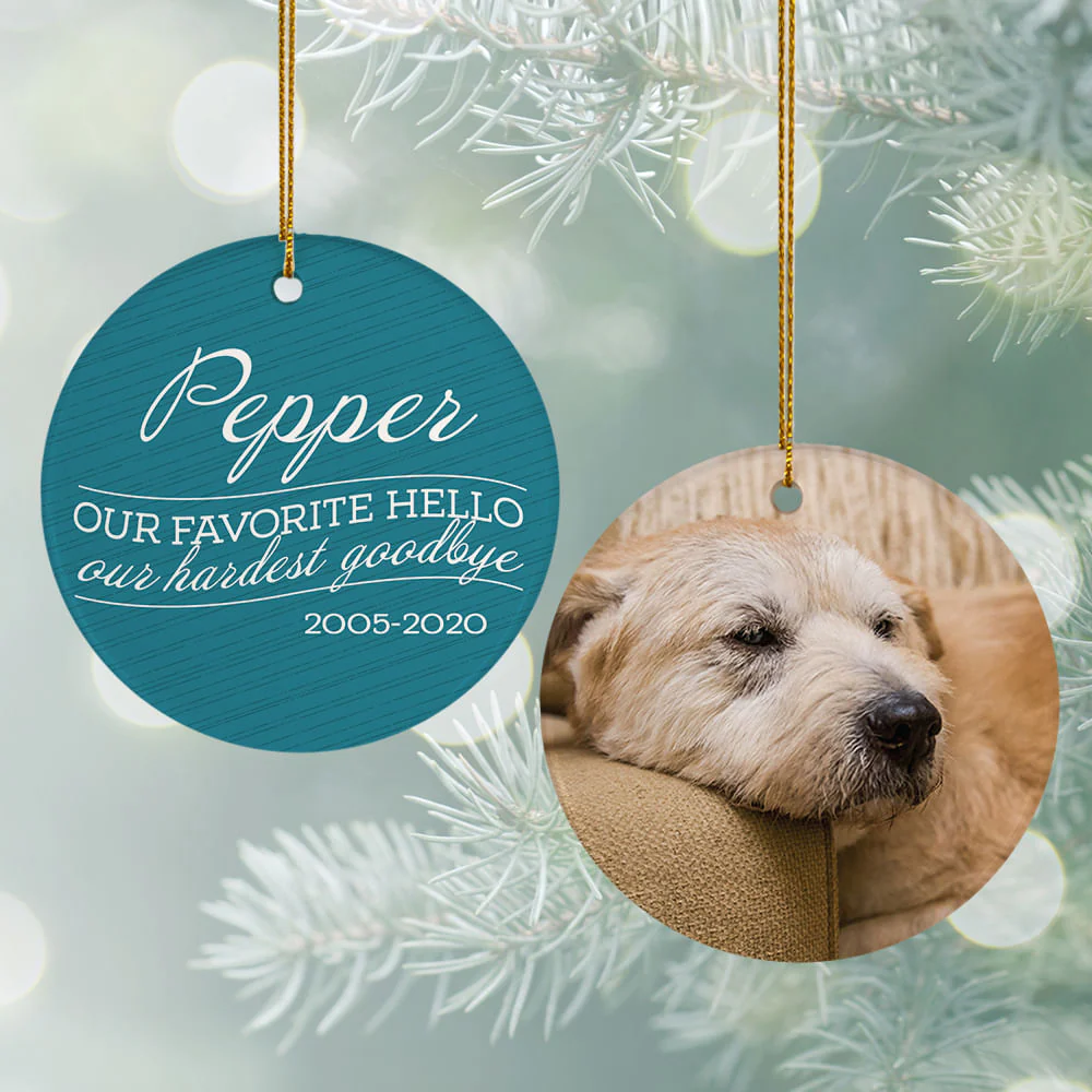 Our Favorite Hello, Hardest Goodbye Dog Personalized Ceramic Round Ornament